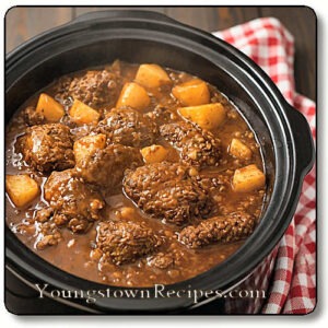 Hamburger patties simmered in rich onion gravy with potatoes creating melt-in-your-mouth deliciousness.Difficulty: Beginner